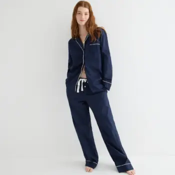 With thoughtful details such as a button-front top and an elastic waistband with drawstring closure on the pants, this pajama set combines timeless style with practicality. Whether you’re unwinding after a long day or enjoying a leisurely weekend morning, this set promises to keep you comfortable and chic.