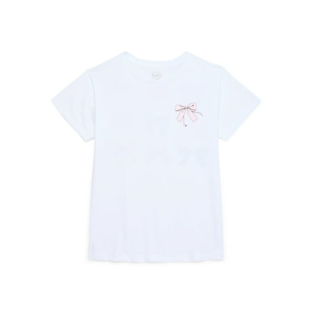 Wonder Nation Girls Bonjour Bows Graphic Print Crewneck Tee with Short Sleeves, Sizes 4-18
